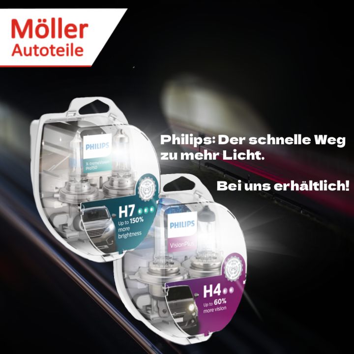 Mit den zuverlässigen H7 und H4 Lampen von PHILIPS sind Sie bestens ausgestattet.